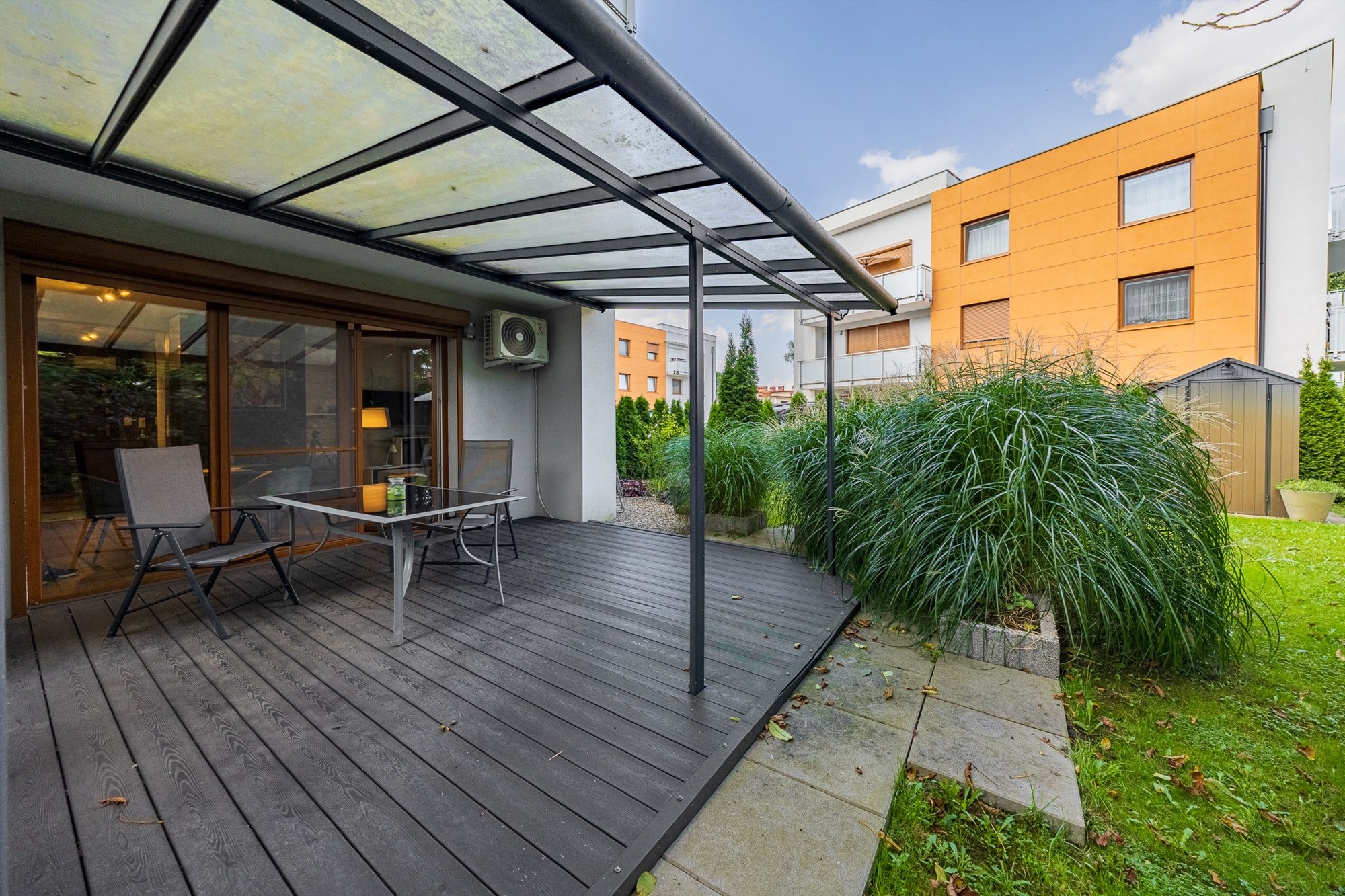 Do mieszkania przynależy prywatny ogród o powierzchni 95 m², pięknie zaprojektowany i starannie zagospodarowany. Zieleń, harmonia i pełna prywatność sprawiają, że przestrzeń ta jest idealnym miejscem relaksu w sercu miasta.