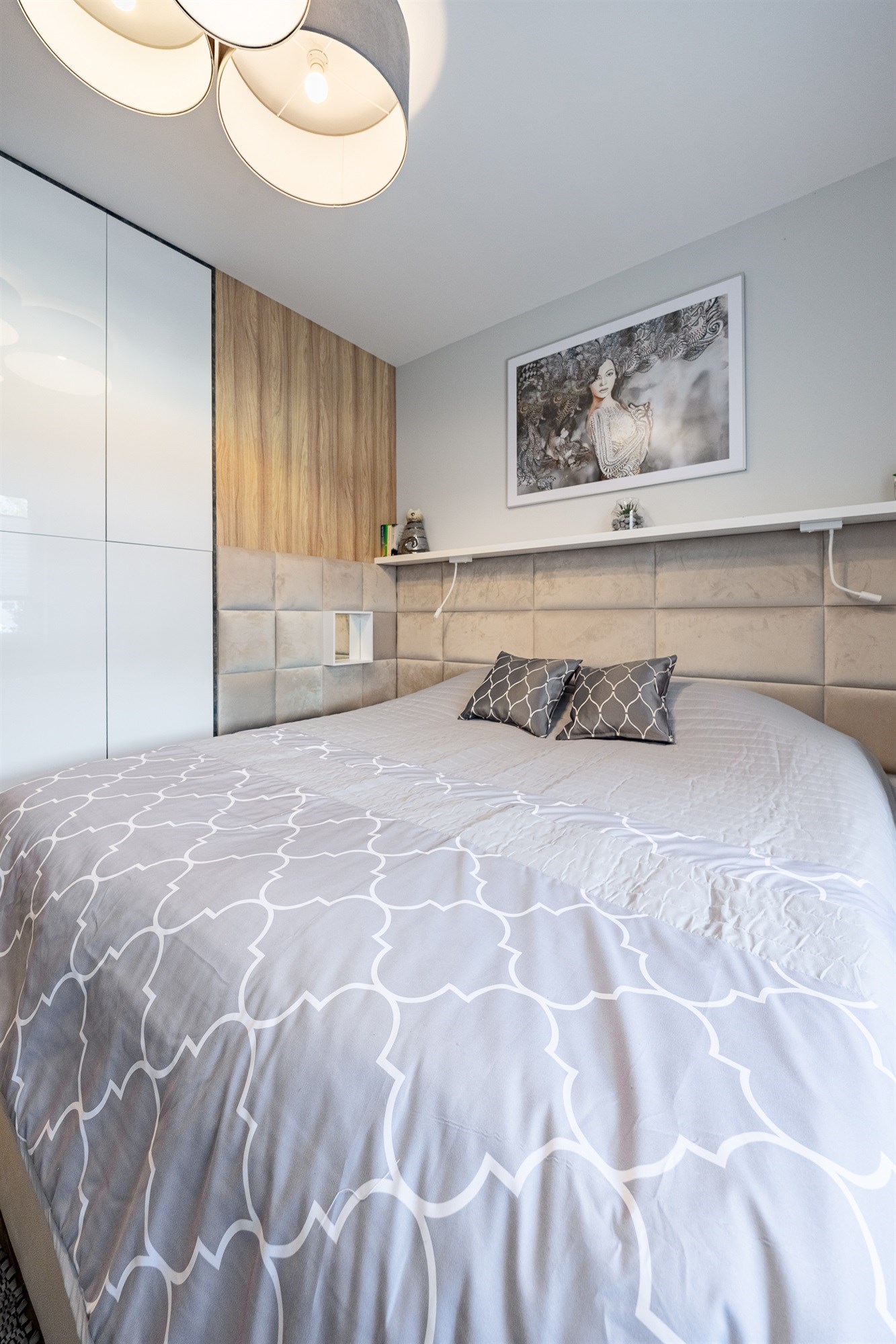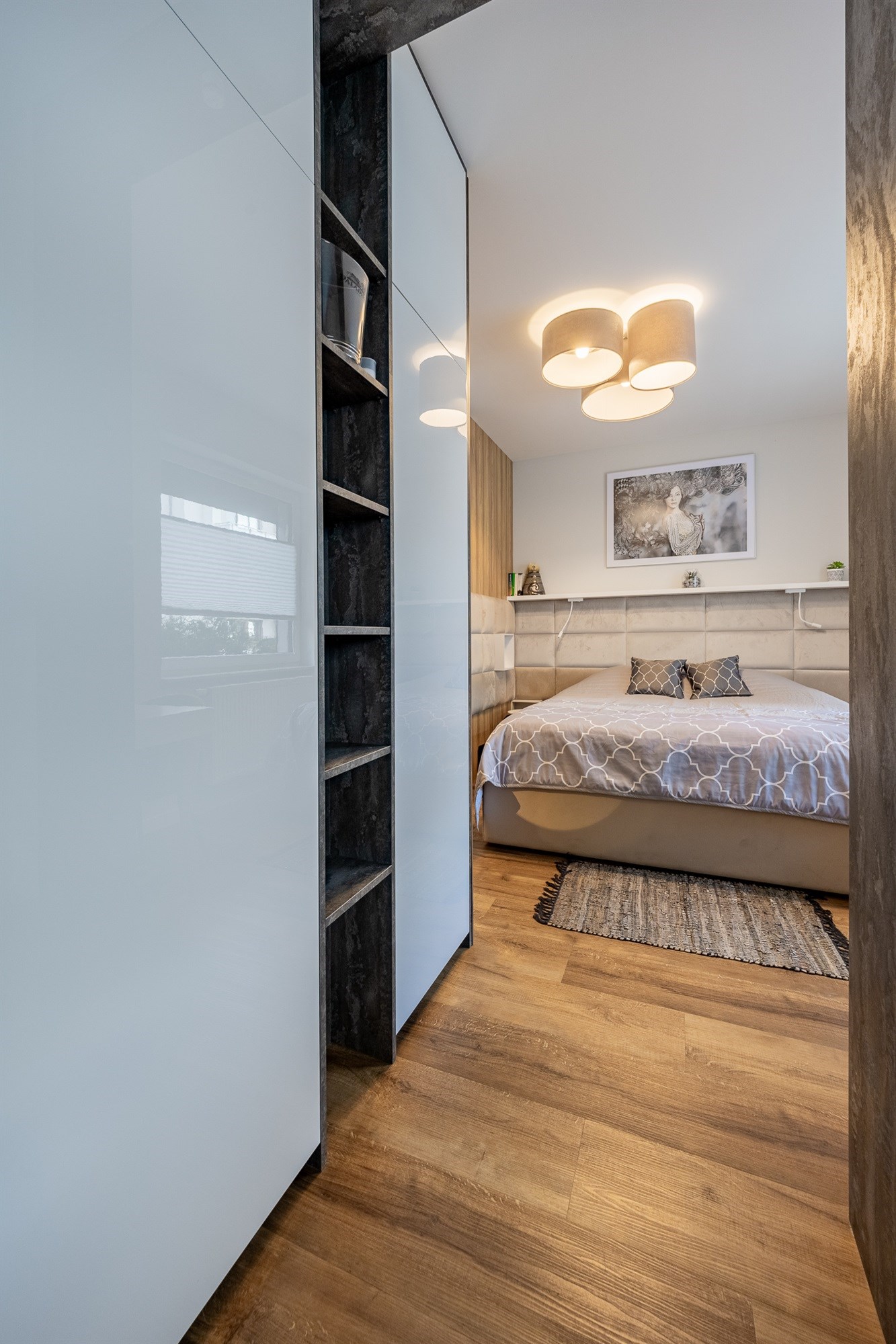 - sypialnia (ok. 12 m²) z praktyczną zabudową meblową,