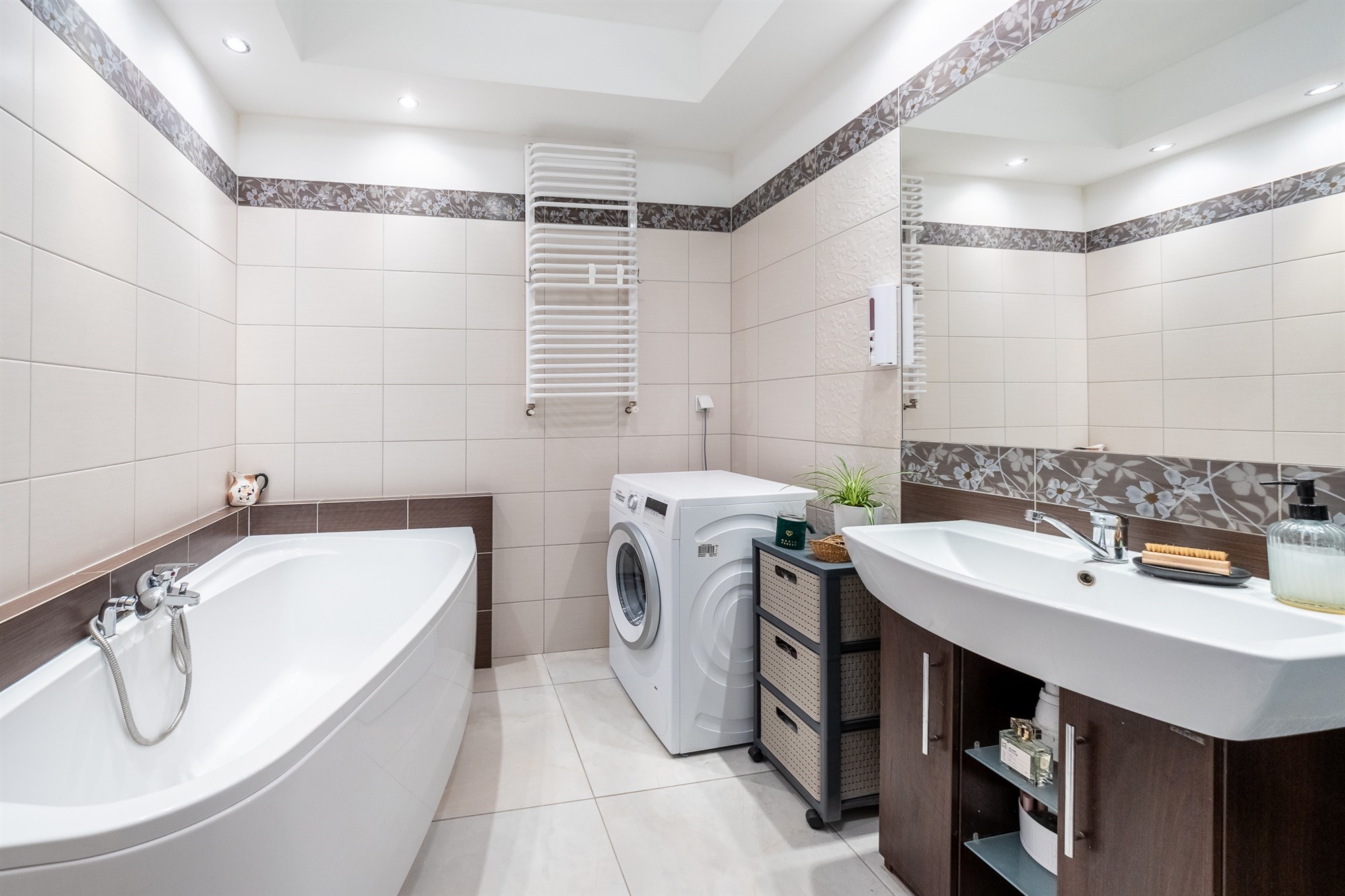 - duża łazienka z wanną, prysznicem i WC,
