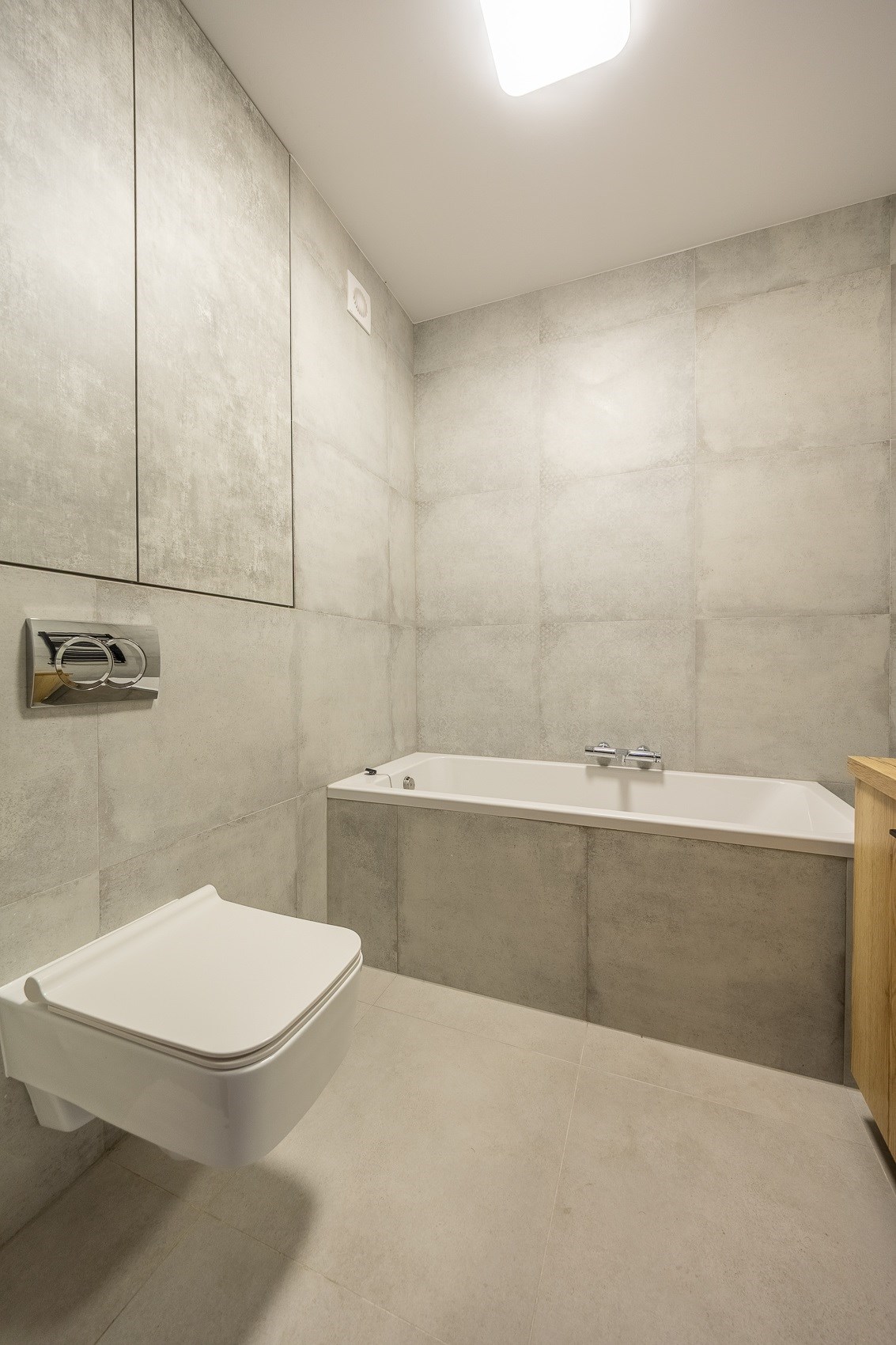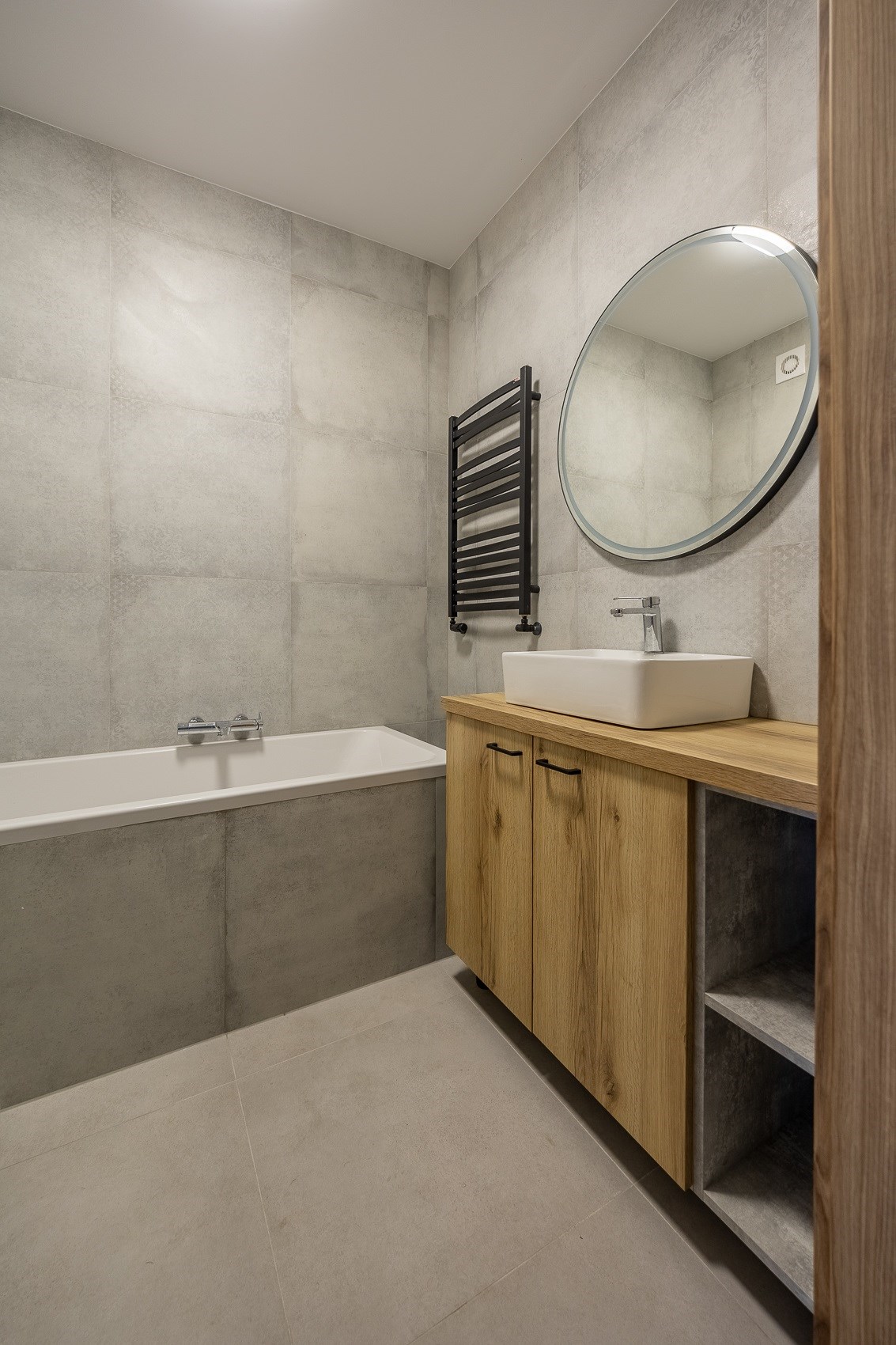 Wykończona nowocześnie, z wanną, wysokiej jakości ceramiką i armaturą. -
