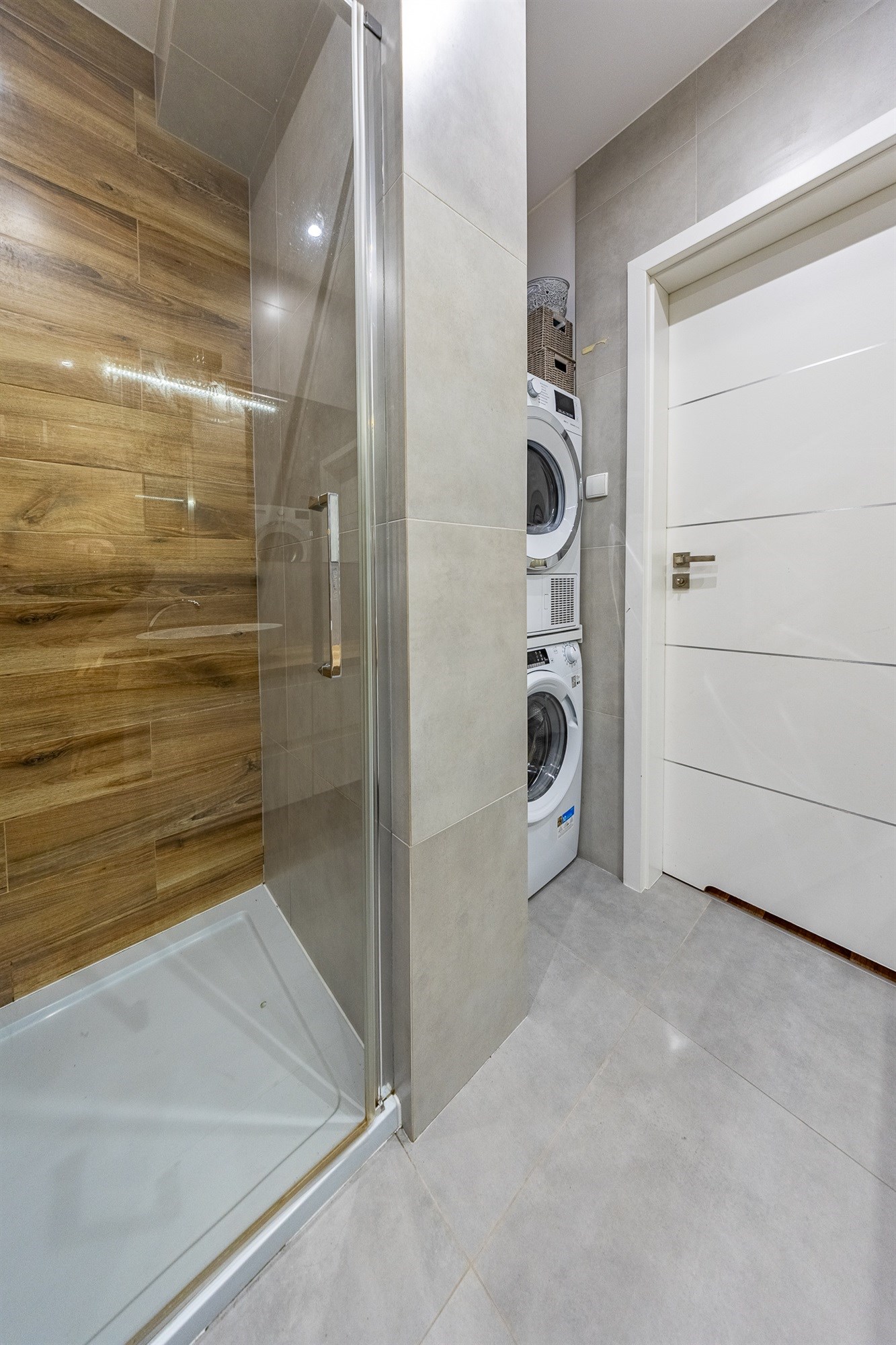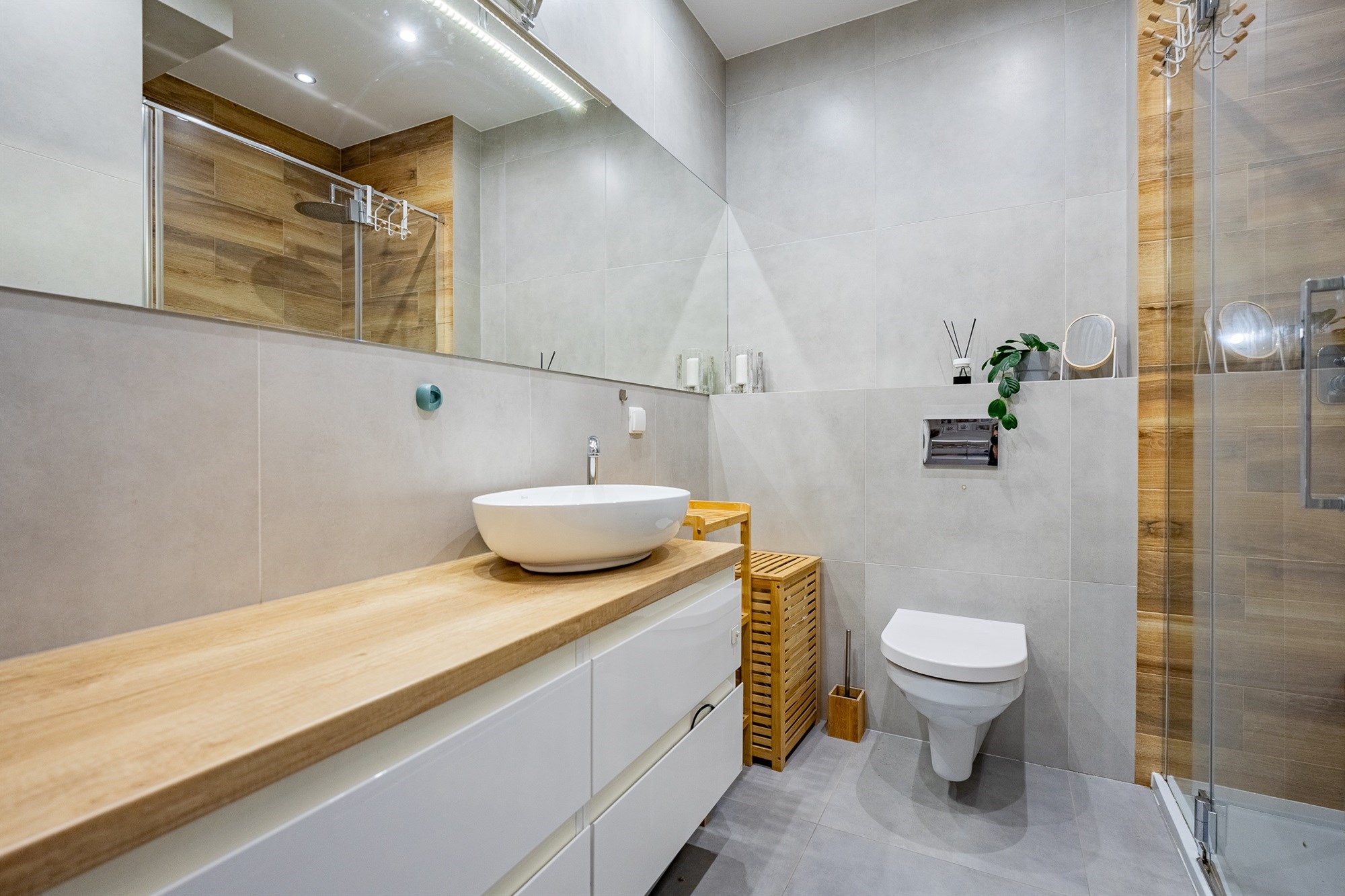 - Łazienka została zaprojektowana tak, aby zapewnić wygodę i miejsce do przechowywania.