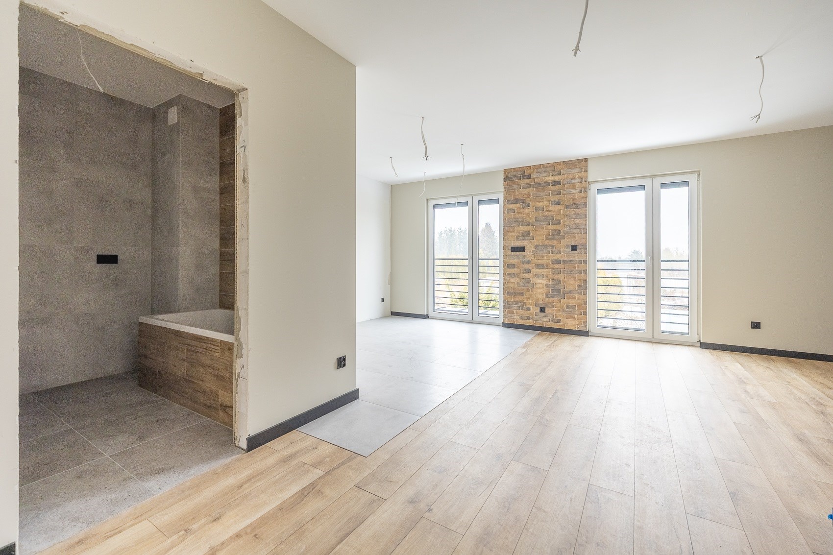 Wnętrze zostało wykończone w standardzie deweloperskim plus – wykonane podłogi, wykończone ściany oraz w pełni zrealizowana łazienka. To optymalny punkt wyjścia do nadania przestrzeni indywidualnego charakteru zgodnie z własną wizją aranżacyjną, bez konieczności prowadzenia prac ciężkich.