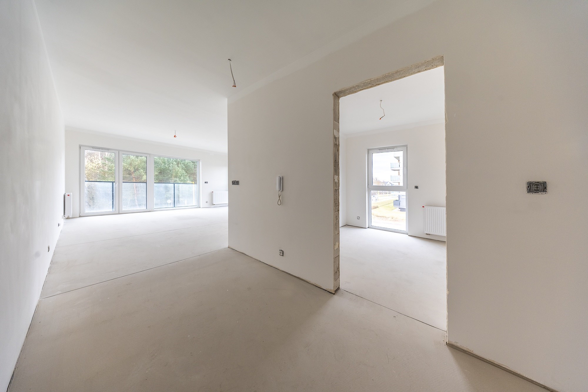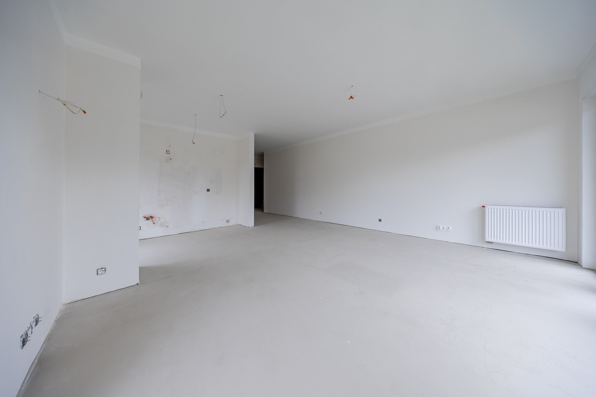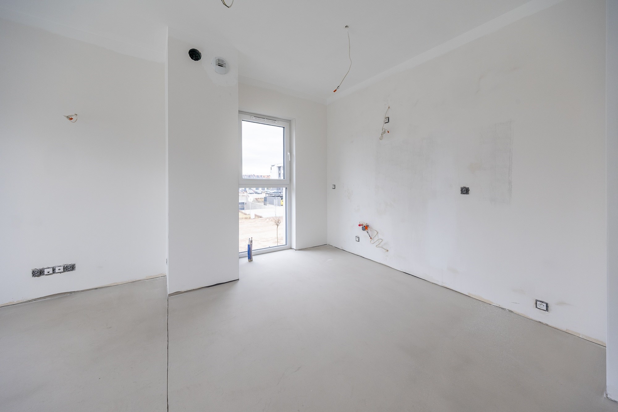 • Ściany gipsowane i malowane — przygotowane pod finalną aranżację