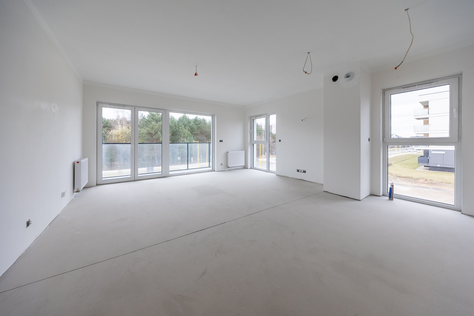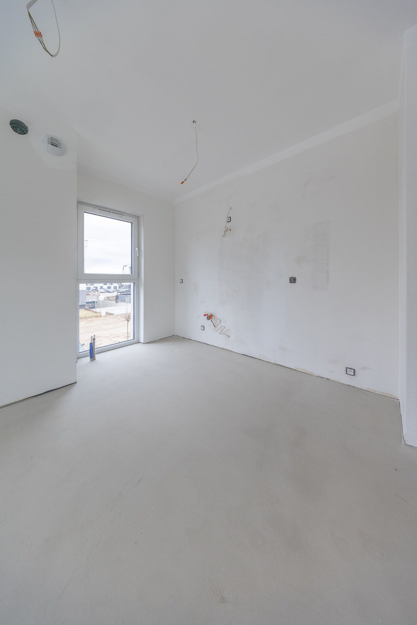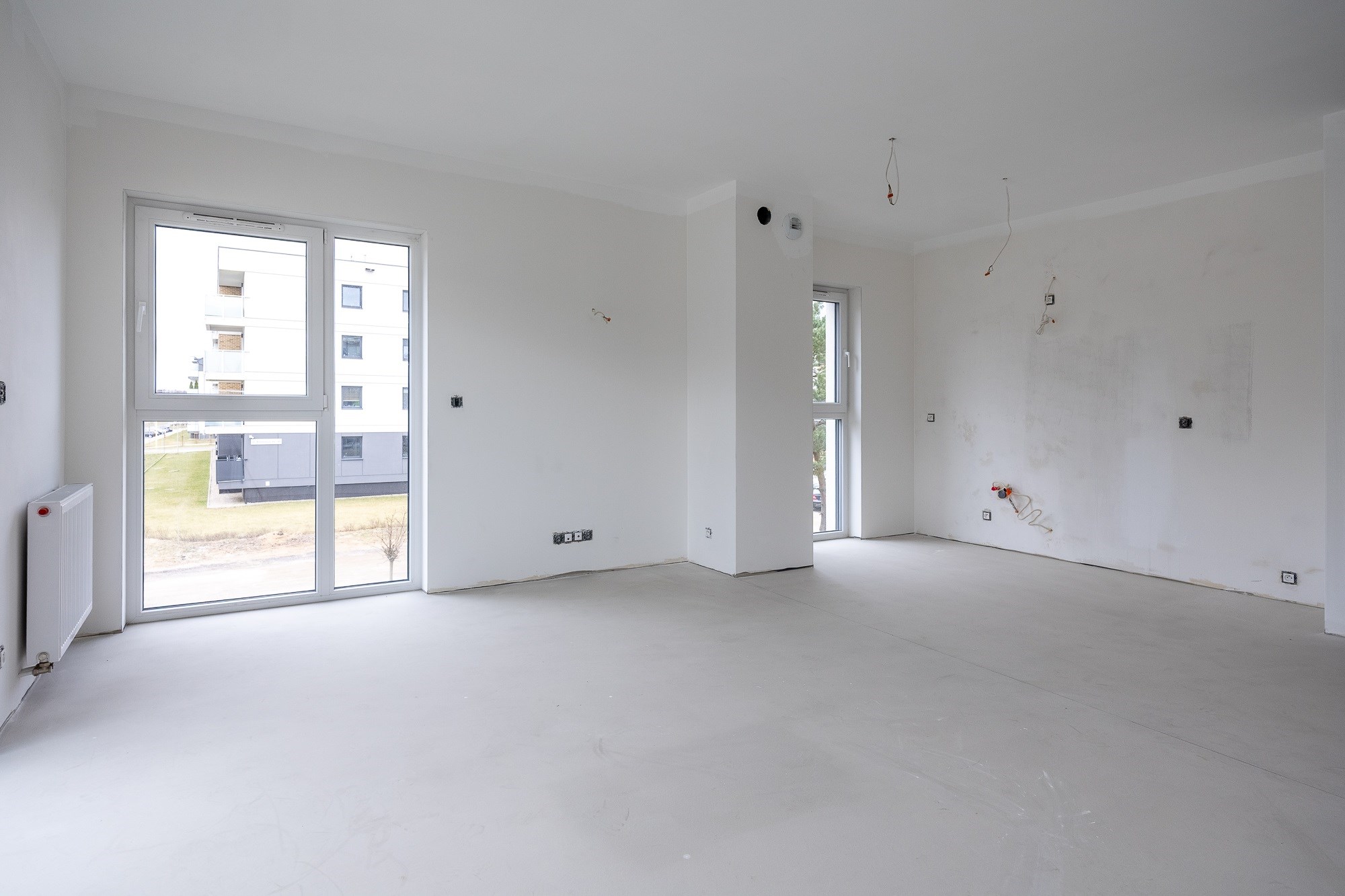 • Ściany gipsowane i malowane — przygotowane pod finalną aranżację