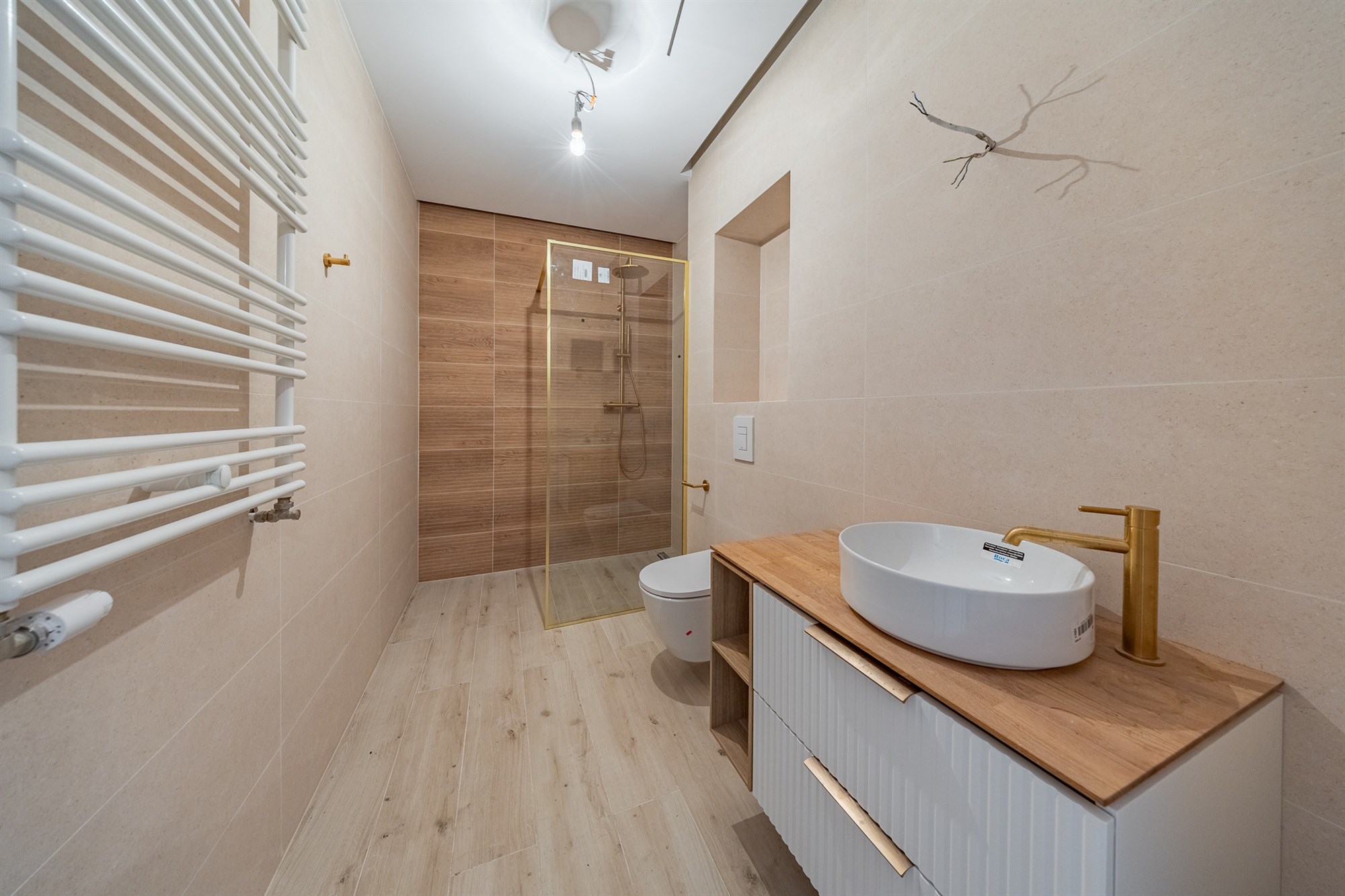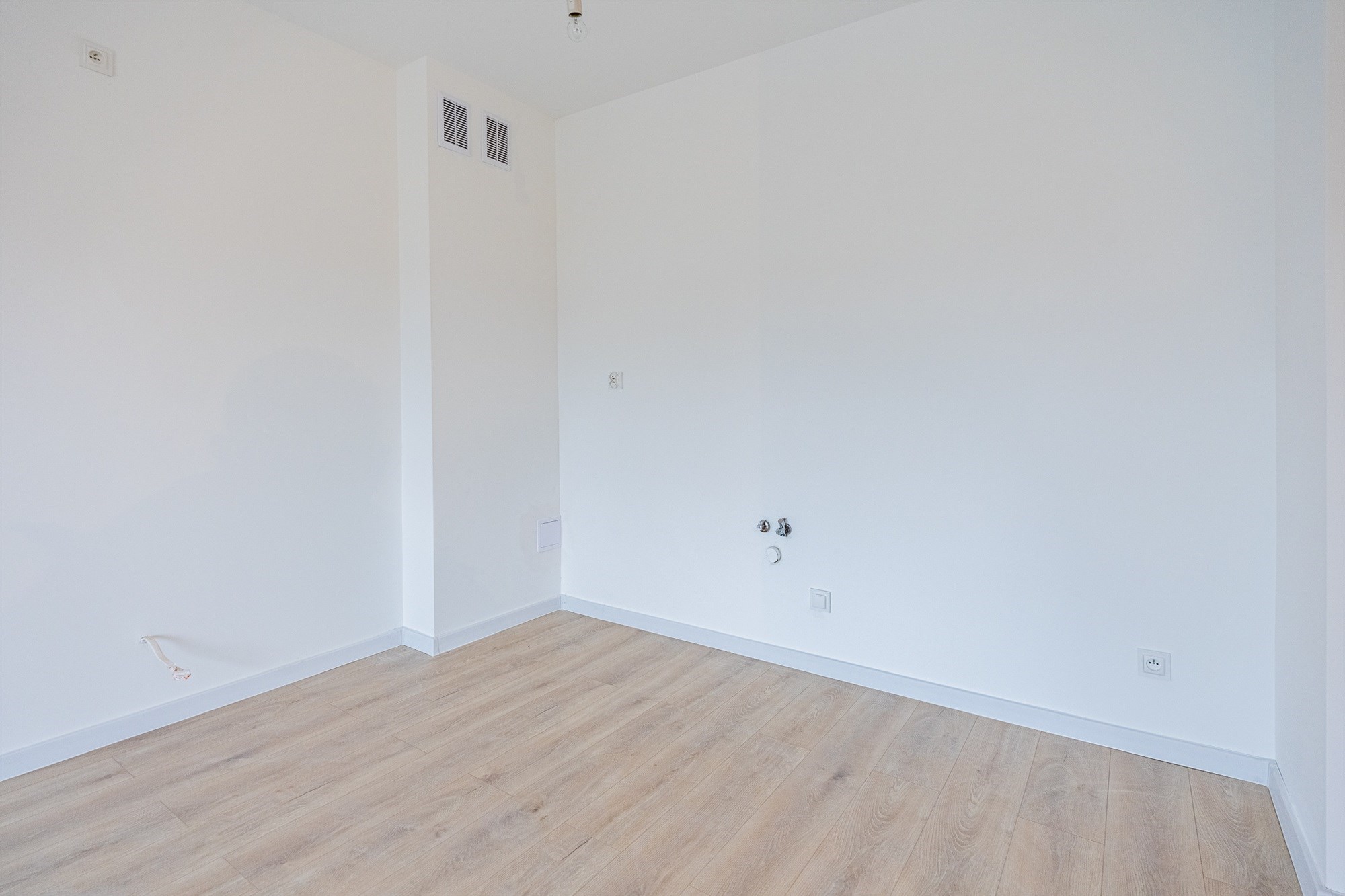 - ściany gipsowane, malowane w uniwersalnej bieli, stanowiące idealne tło dla dowolnej aranżacji,