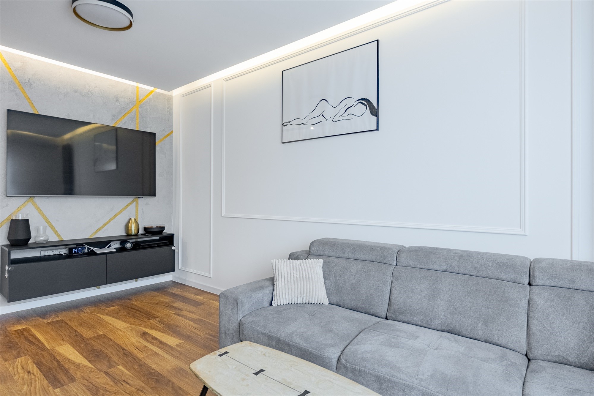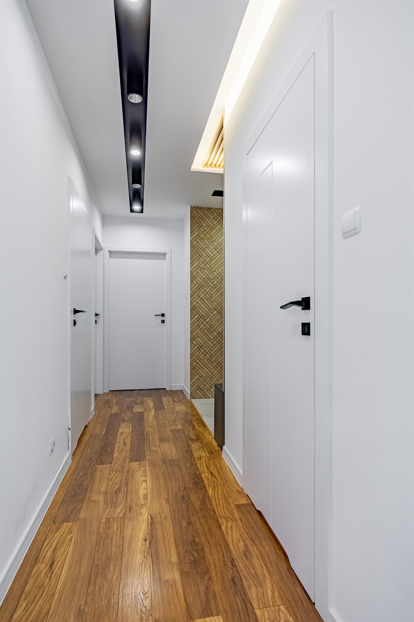 Mieszkanie wykończone zostało w bardzo wysokim standardzie, z wykorzystaniem nowoczesnych technologii: