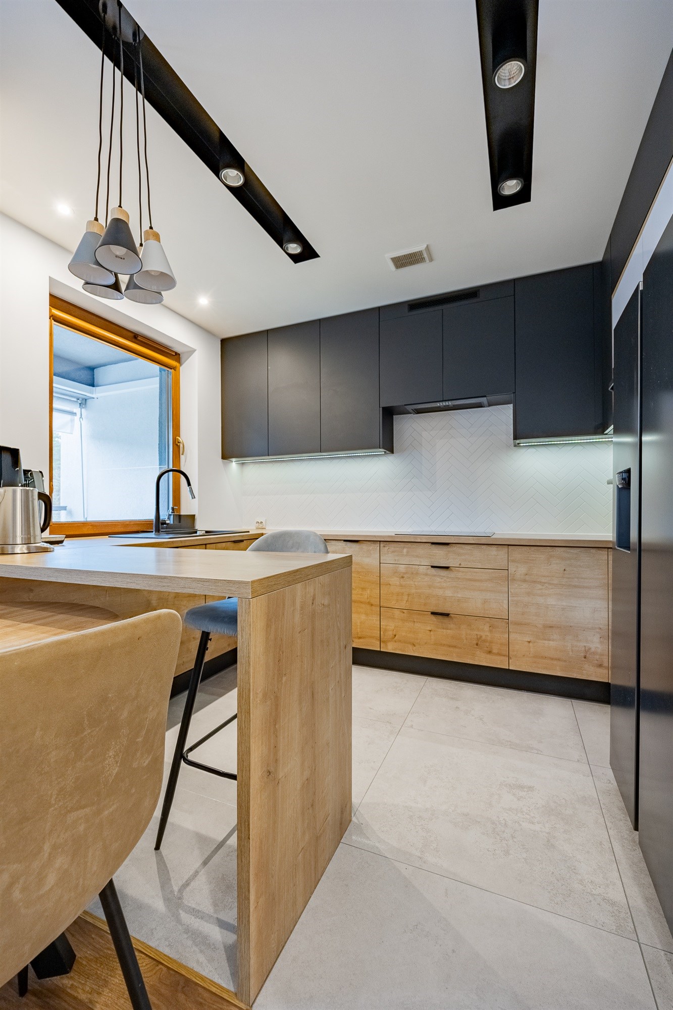- Kuchnia o pow. 7 m2 wykonana z wysokiej jakości materiałów, wyposażona w sprzęt AGD marki Bosch – idealne połączenie nowoczesnego designu i niezawodności.