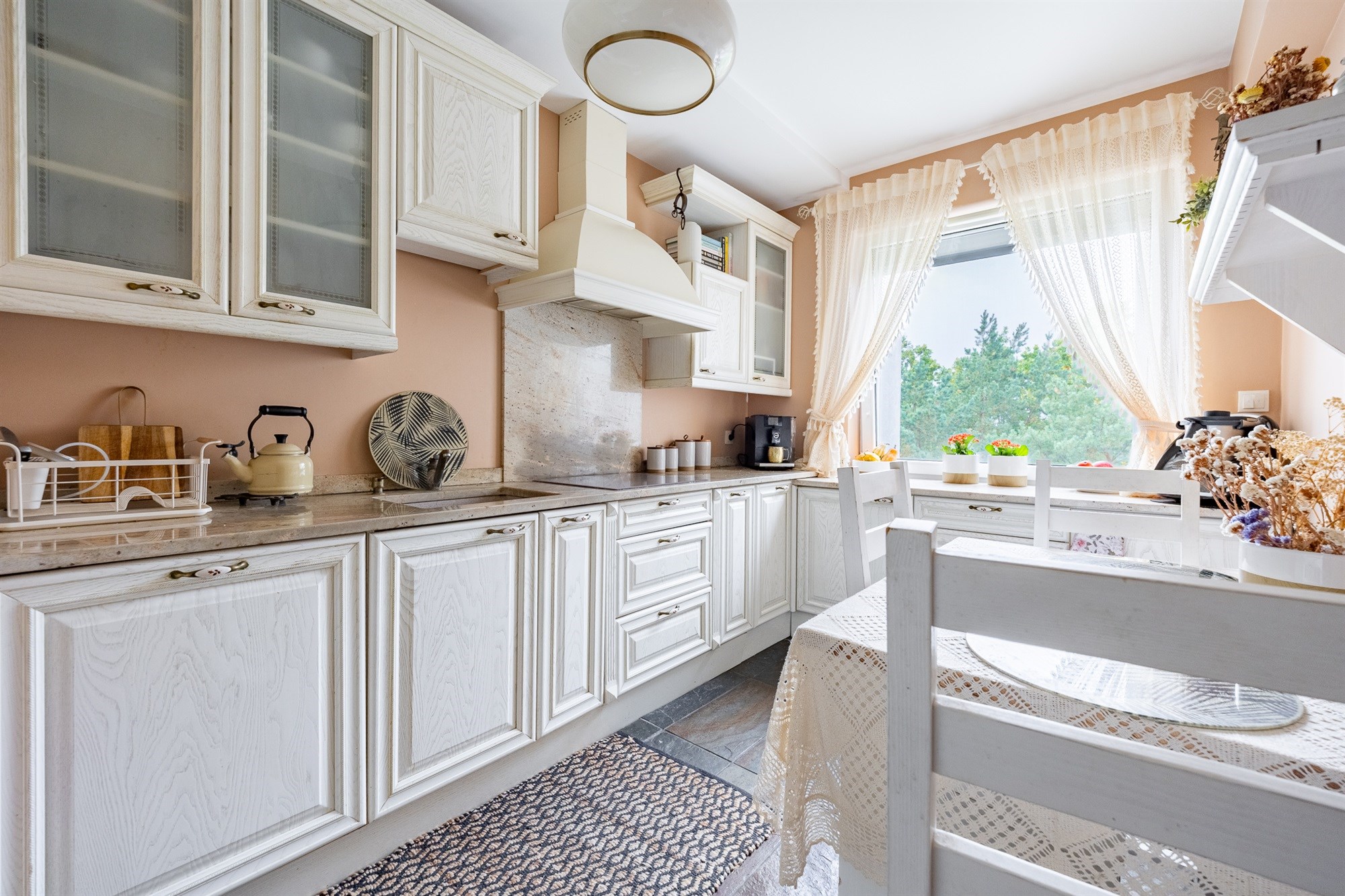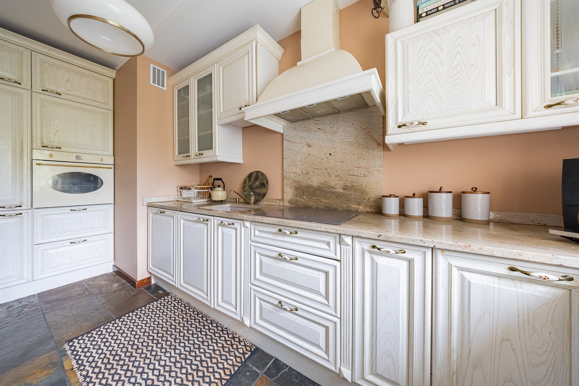 - Kuchnia z Duszą: W pełni wyposażona kuchnia o pow. 9,2 mkw utrzymana w uroczym, prowansalskim stylu. Drewniana zabudowa, kamienne blaty oraz sprzęty AGD wysokiej klasy (m.in. piekarnik SMEG, elektryczna płyta i piekarnik idealnie wkomponowane w styl) sprawią, że gotowanie stanie się przyjemnością.