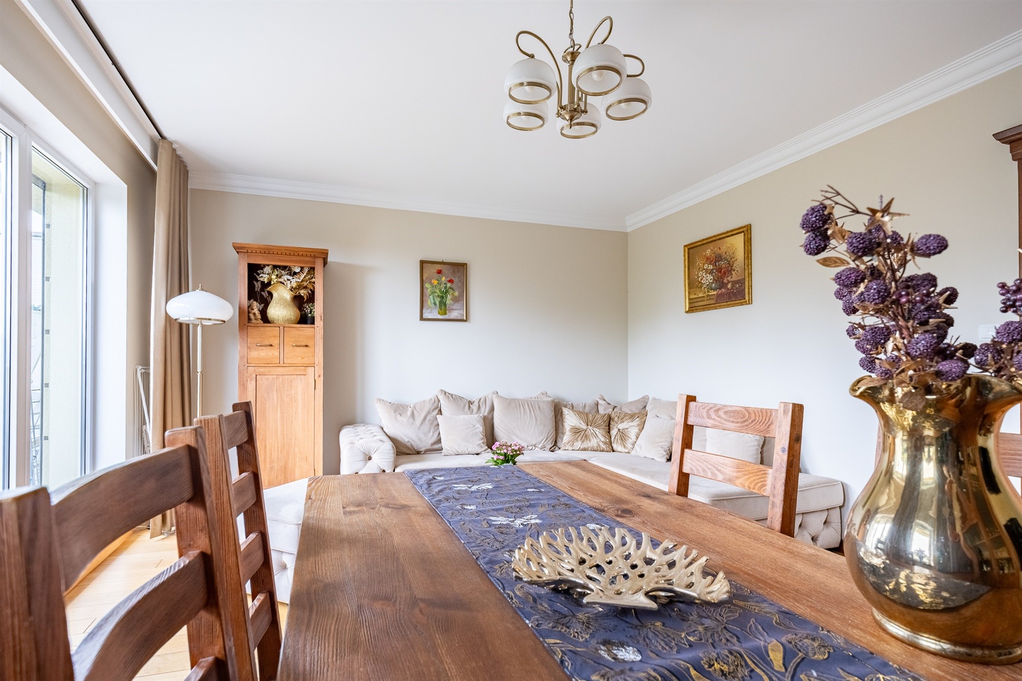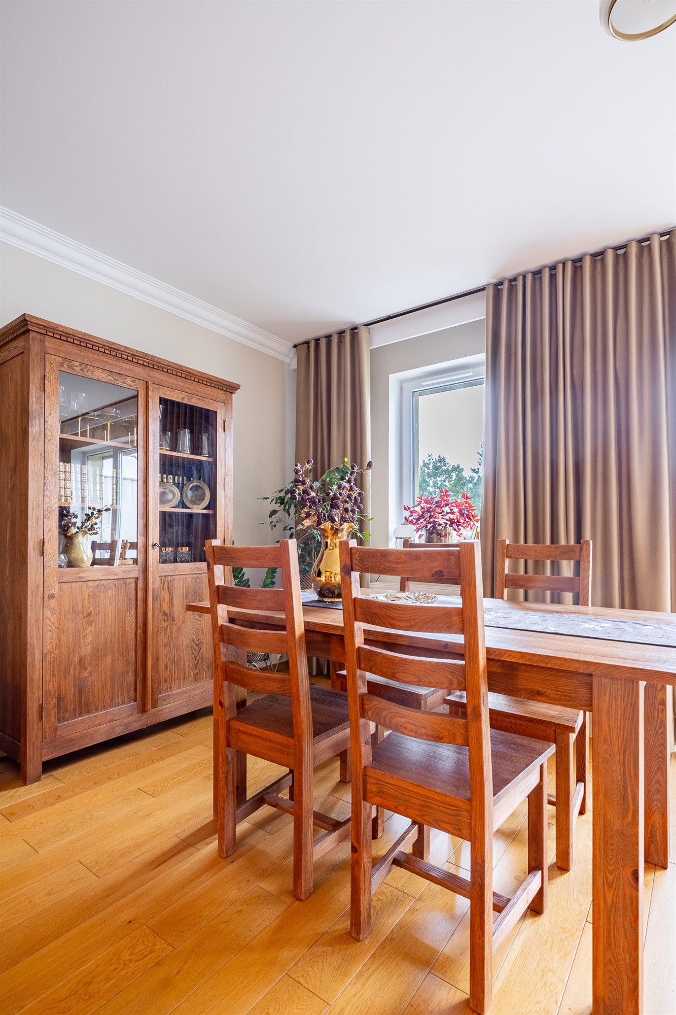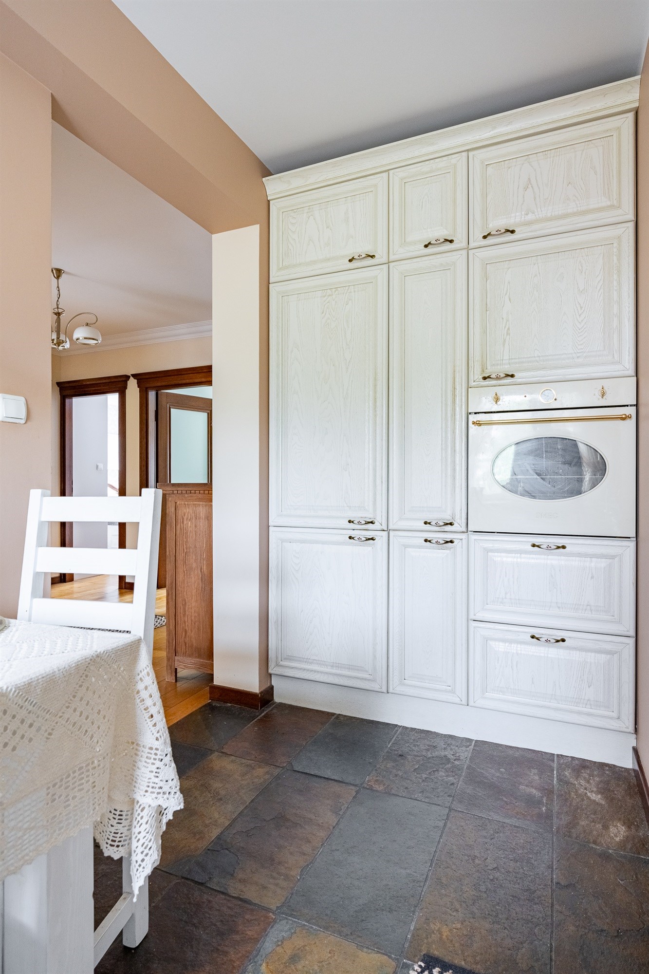 - Klasyka i Jakość: Na podłogach znajdą Państwo eleganckie, drewniane oraz kamienne podłogi, a wnętrza dopełniają solidne, stylowe drewniane drzwi.