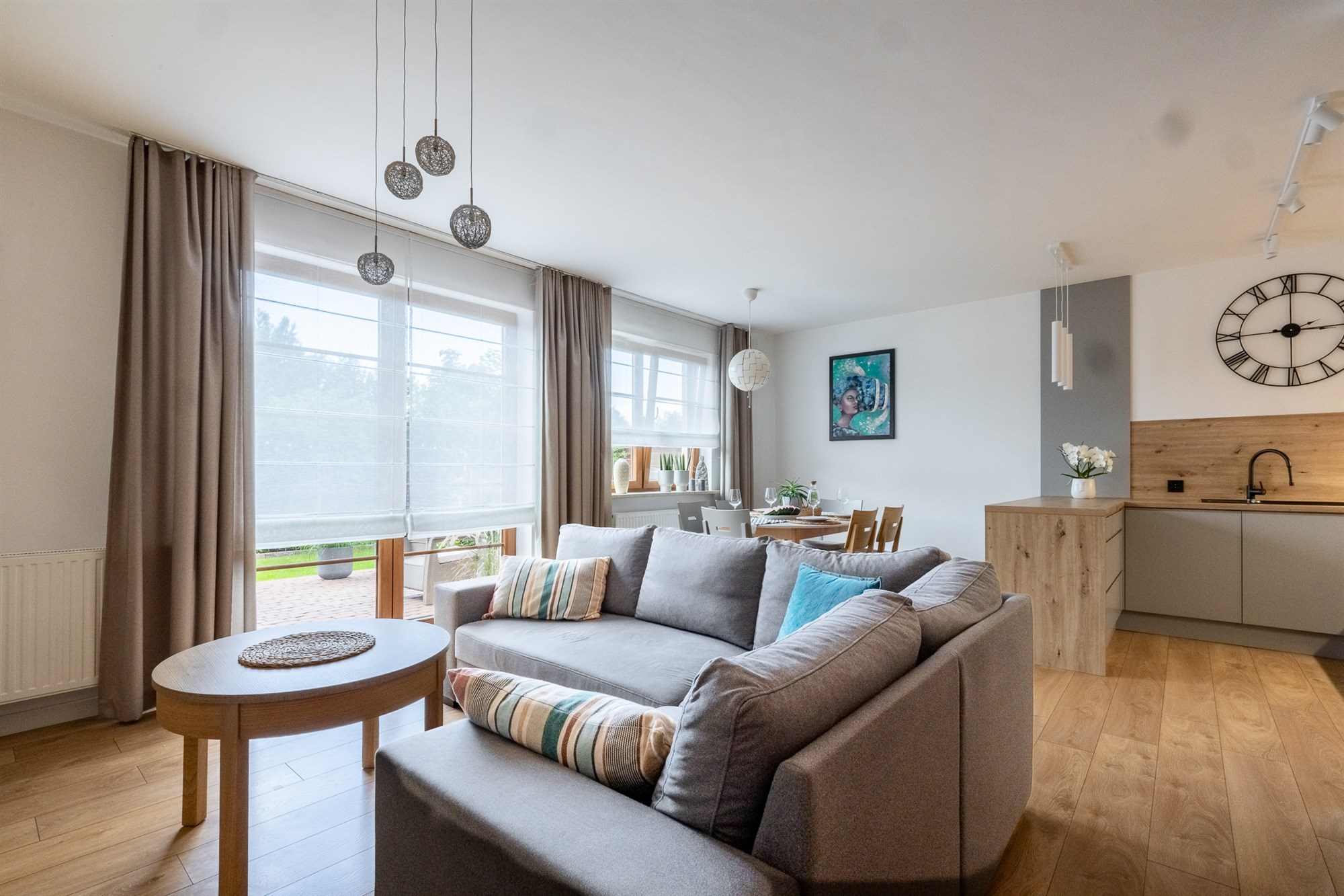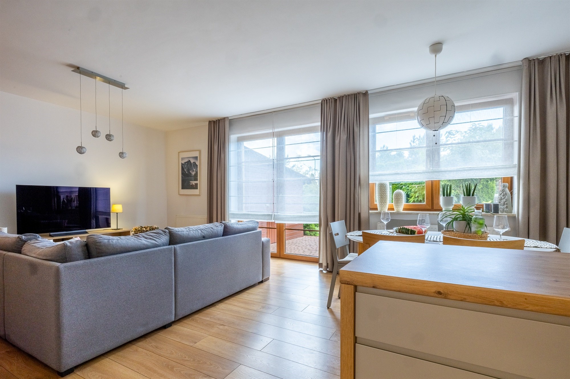 - przestronny salon z nowoczesnym aneksem kuchennym o pow. 35 m2,