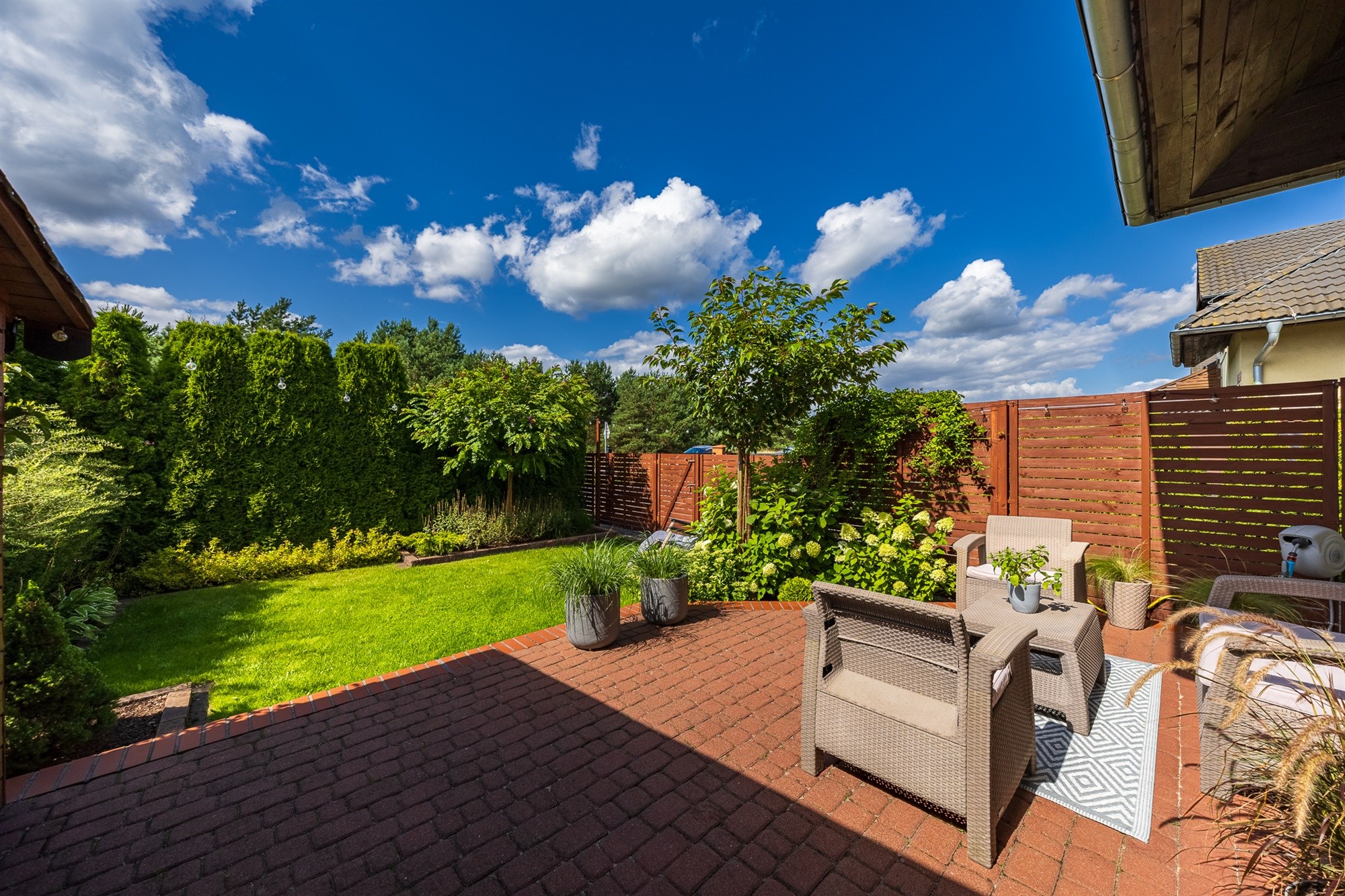 Do lokalu przynależy prywatny ogródek zaprojektowany przez architekta krajobrazu o pow. ok. 75 m2 łącznie z tarasem. Ogródek posiada automatyczny systemem nawadniania, oświetleniem oraz praktycznym domkiem gospodarczym. To idealna przestrzeń do relaksu i spędzania czasu na świeżym powietrzu.