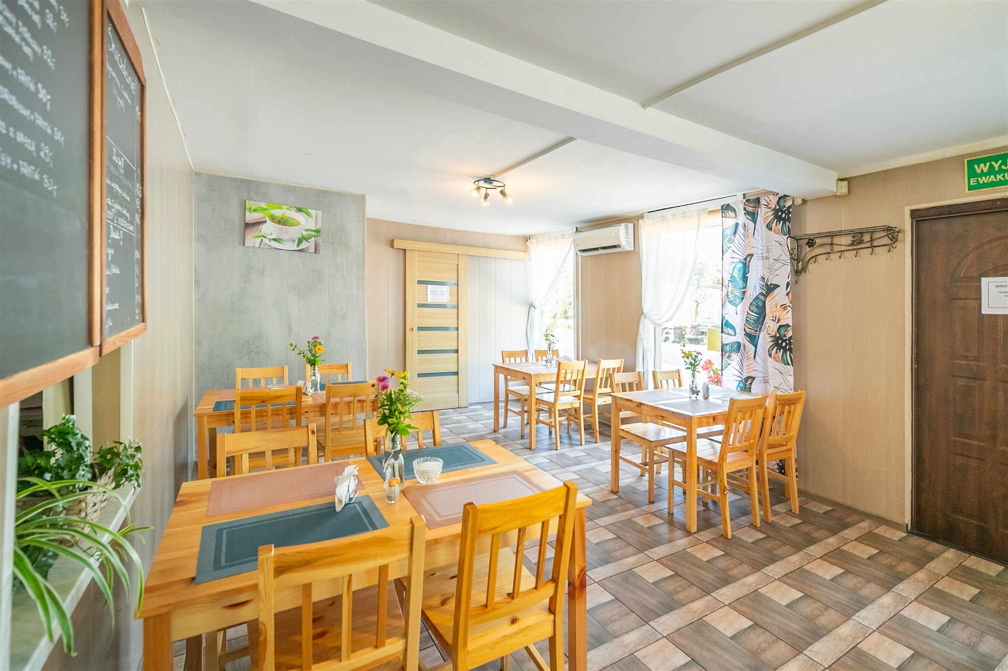 - sala konsumpcyjna z 7 stolikami, 28 krzesłami i barem, wyposażona w nową klimatyzację i duże witryny okienne